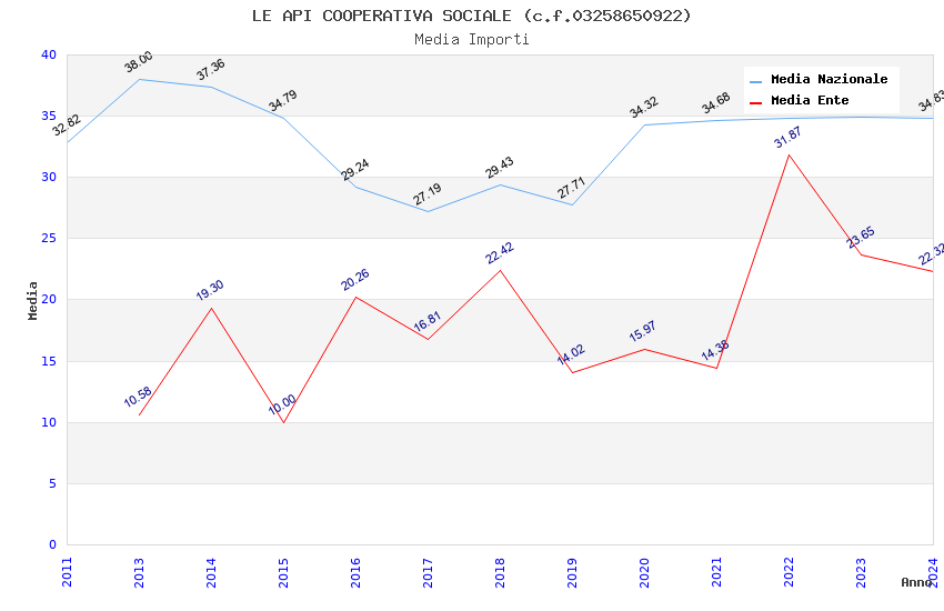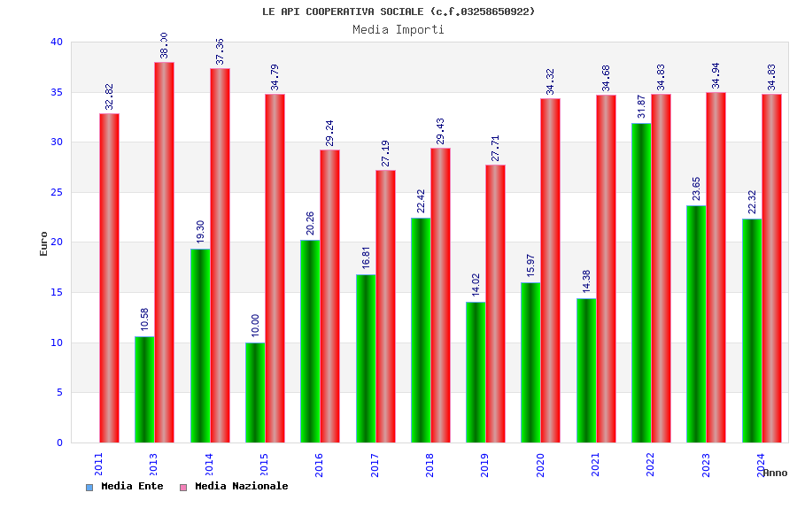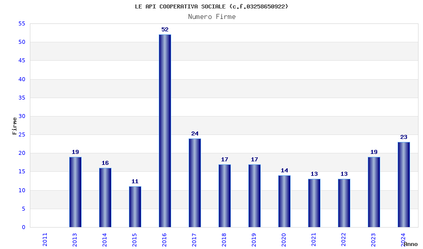 | Anno | Firme | Importi | Media | Naz. | Reg. | Prov. | Comu. |