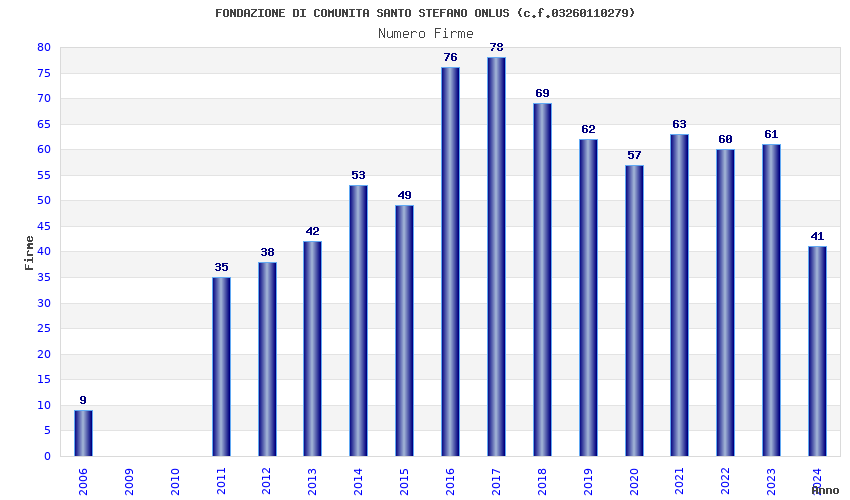 | Anno | Firme | Importi | Media | Naz. | Reg. | Prov. | Comu. |