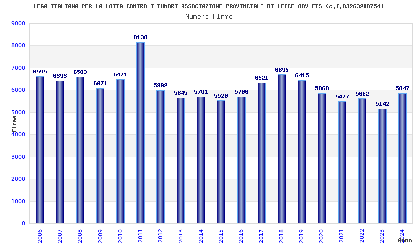 | Anno | Firme | Importi | Media | Naz. | Reg. | Prov. | Comu. |