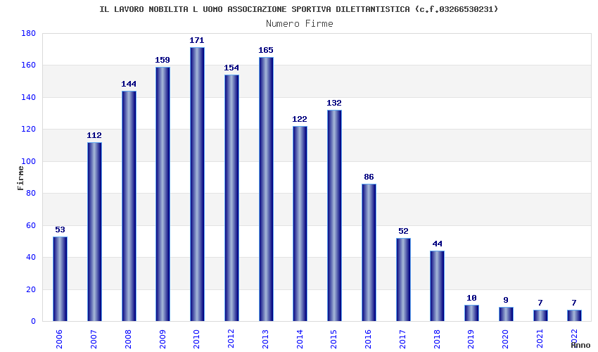 | Anno | Firme | Importi | Media | Naz. | Reg. | Prov. | Comu. |