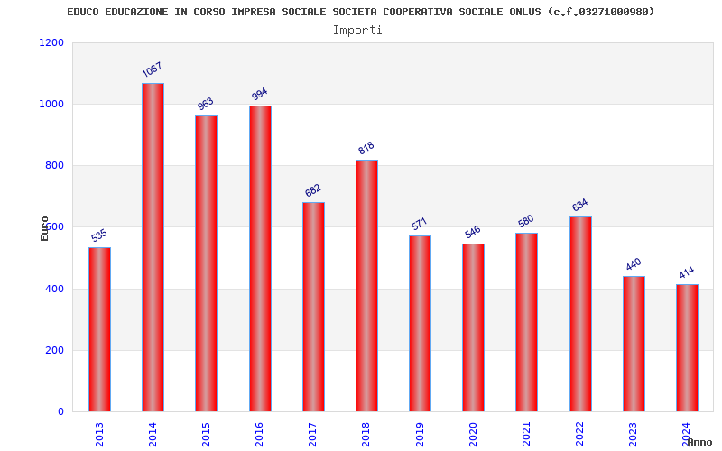 | Anno | Firme | Importi | Media | Naz. | Reg. | Prov. | Comu. |