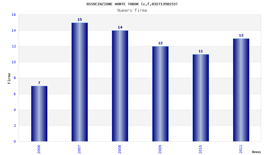 | Anno | Firme | Importi | Media | Naz. | Reg. | Prov. | Comu. |