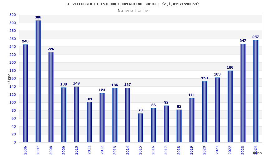 | Anno | Firme | Importi | Media | Naz. | Reg. | Prov. | Comu. |
