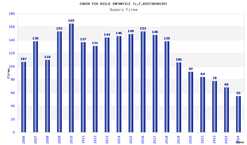 | Anno | Firme | Importi | Media | Naz. | Reg. | Prov. | Comu. |