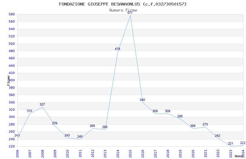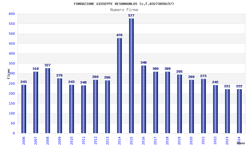 | Anno | Firme | Importi | Media | Naz. | Reg. | Prov. | Comu. |