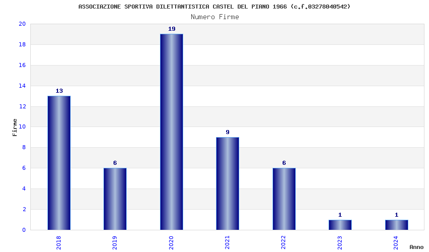 | Anno | Firme | Importi | Media | Naz. | Reg. | Prov. | Comu. |