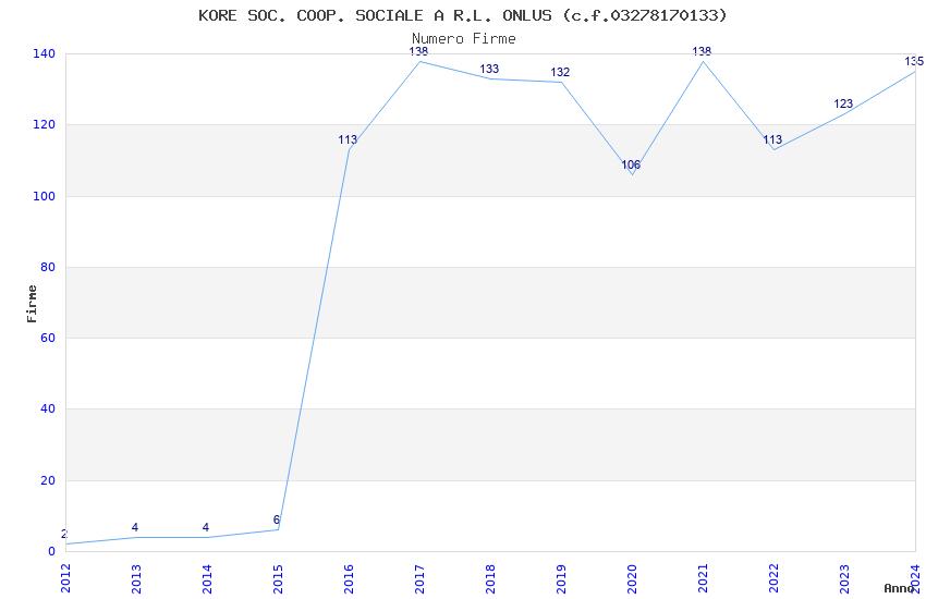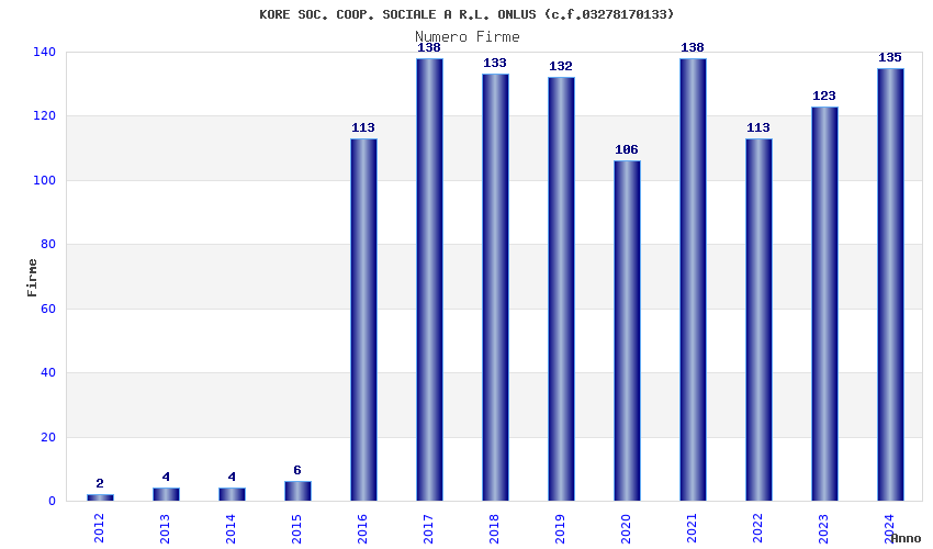 | Anno | Firme | Importi | Media | Naz. | Reg. | Prov. | Comu. |