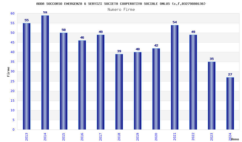 | Anno | Firme | Importi | Media | Naz. | Reg. | Prov. | Comu. |
