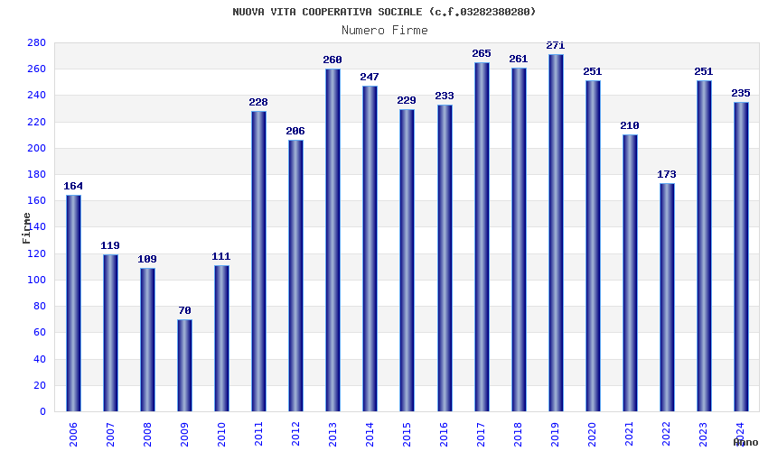 | Anno | Firme | Importi | Media | Naz. | Reg. | Prov. | Comu. |