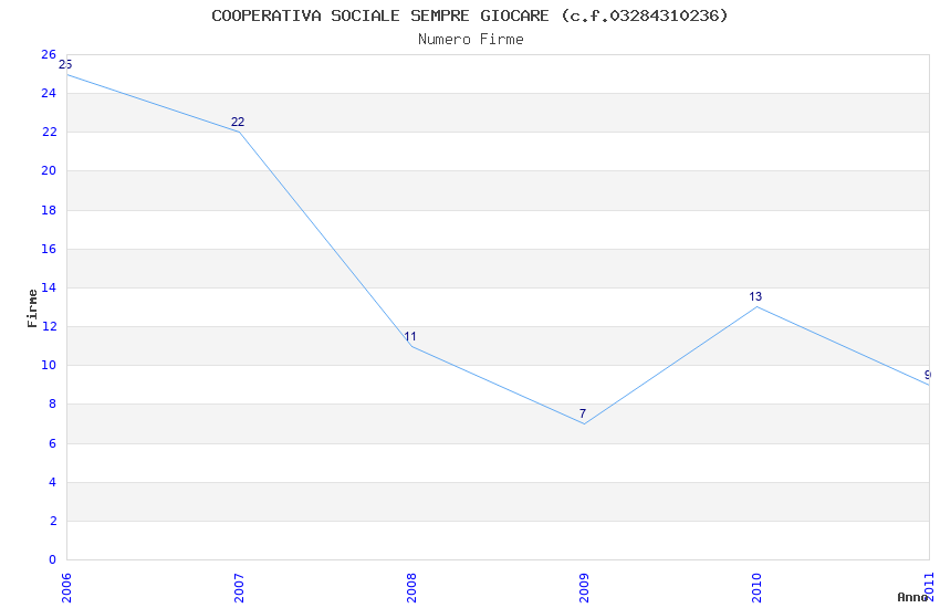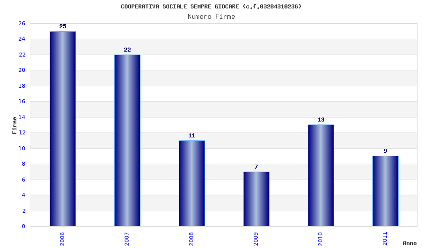 | Anno | Firme | Importi | Media | Naz. | Reg. | Prov. | Comu. |