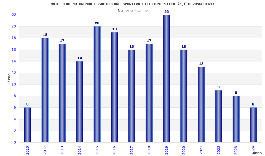 | Anno | Firme | Importi | Media | Naz. | Reg. | Prov. | Comu. |