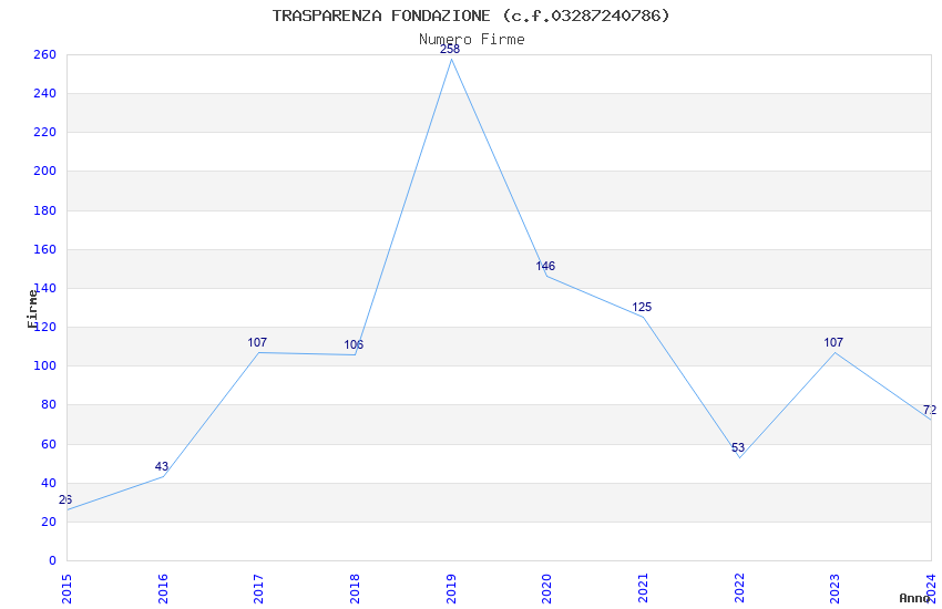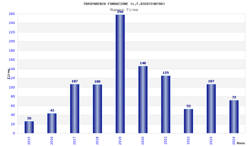 | Anno | Firme | Importi | Media | Naz. | Reg. | Prov. | Comu. |