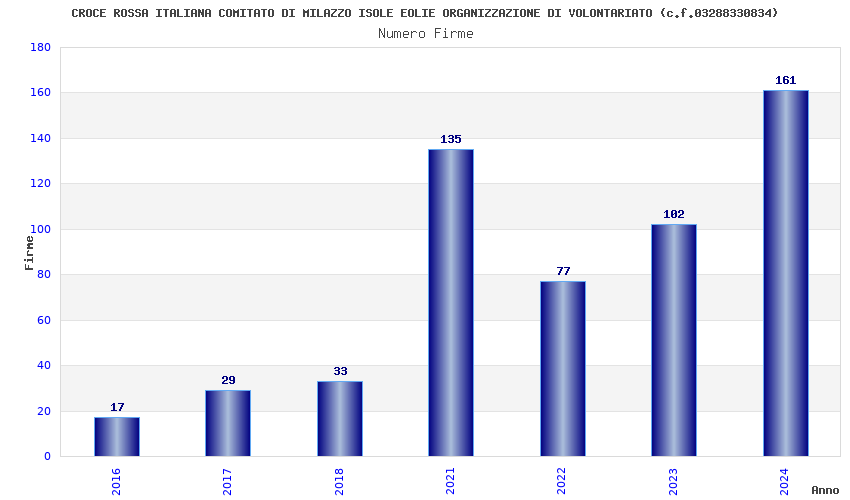 | Anno | Firme | Importi | Media | Naz. | Reg. | Prov. | Comu. |