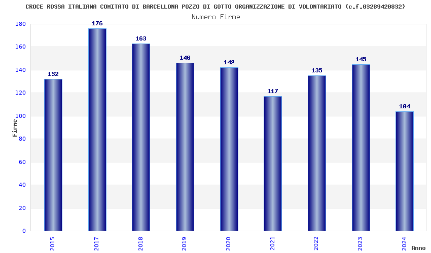 | Anno | Firme | Importi | Media | Naz. | Reg. | Prov. | Comu. |