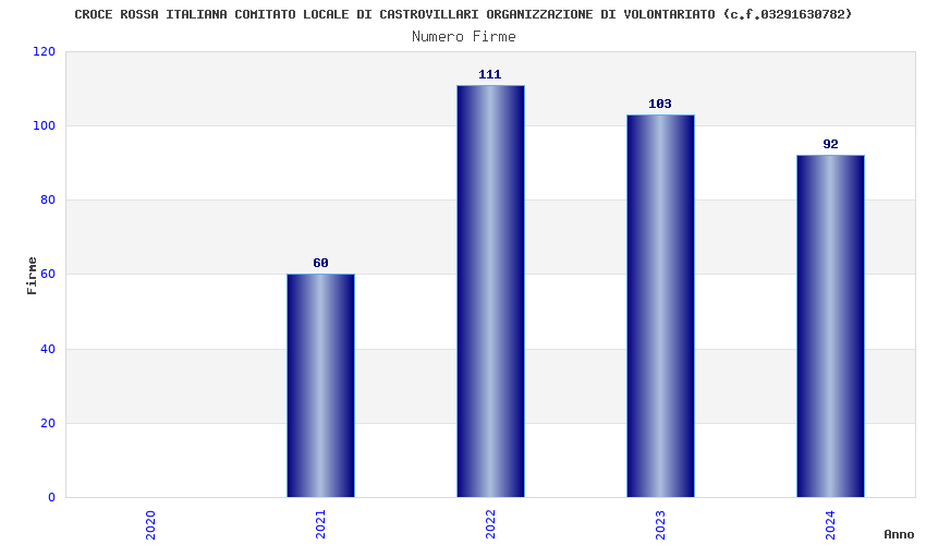 | Anno | Firme | Importi | Media | Naz. | Reg. | Prov. | Comu. |