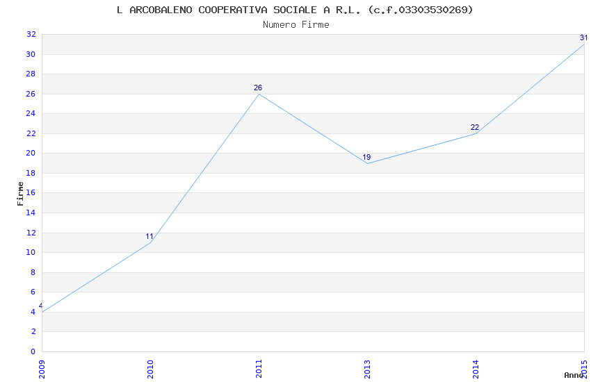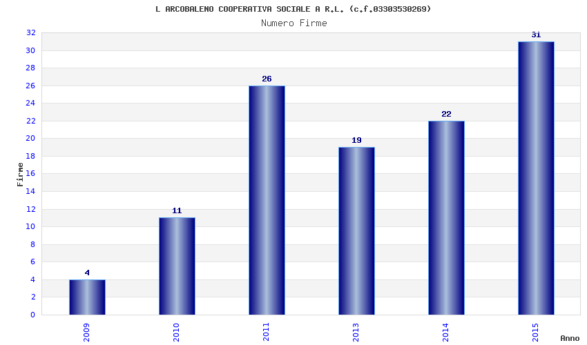 | Anno | Firme | Importi | Media | Naz. | Reg. | Prov. | Comu. |