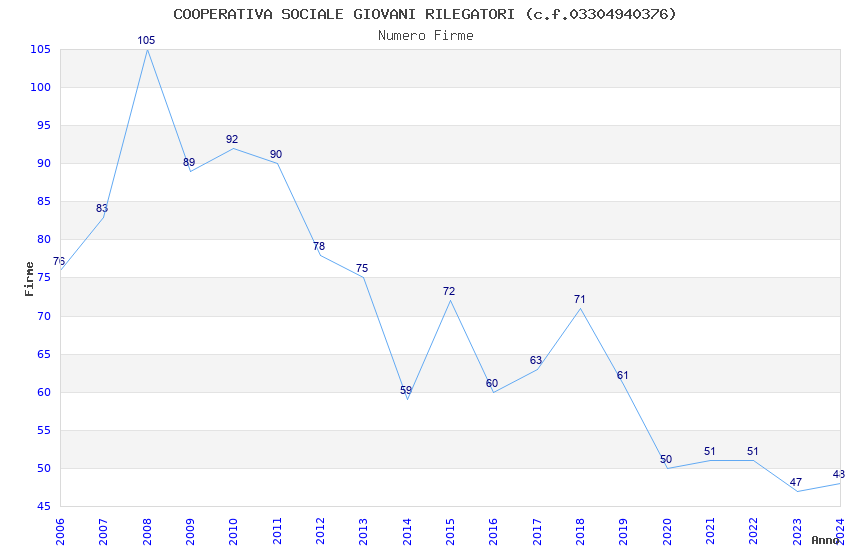 | Anno | Firme | Importi | Media | Naz. | Reg. | Prov. | Comu. |