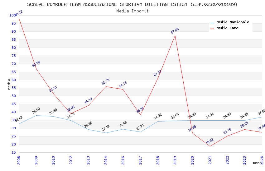 | Anno | Firme | Importi | Media | Naz. | Reg. | Prov. | Comu. |