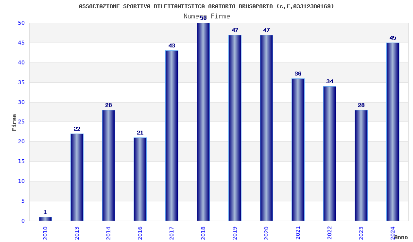 | Anno | Firme | Importi | Media | Naz. | Reg. | Prov. | Comu. |