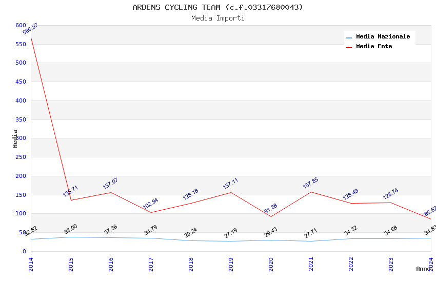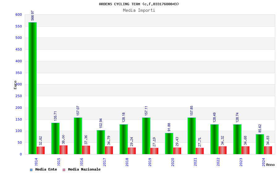 | Anno | Firme | Importi | Media | Naz. | Reg. | Prov. | Comu. |
