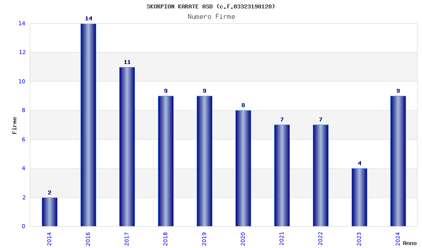 | Anno | Firme | Importi | Media | Naz. | Reg. | Prov. | Comu. |