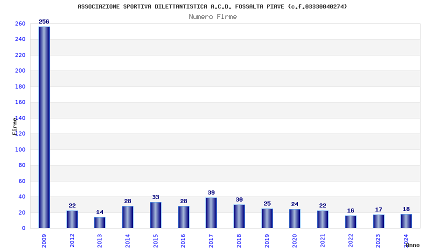 | Anno | Firme | Importi | Media | Naz. | Reg. | Prov. | Comu. |
