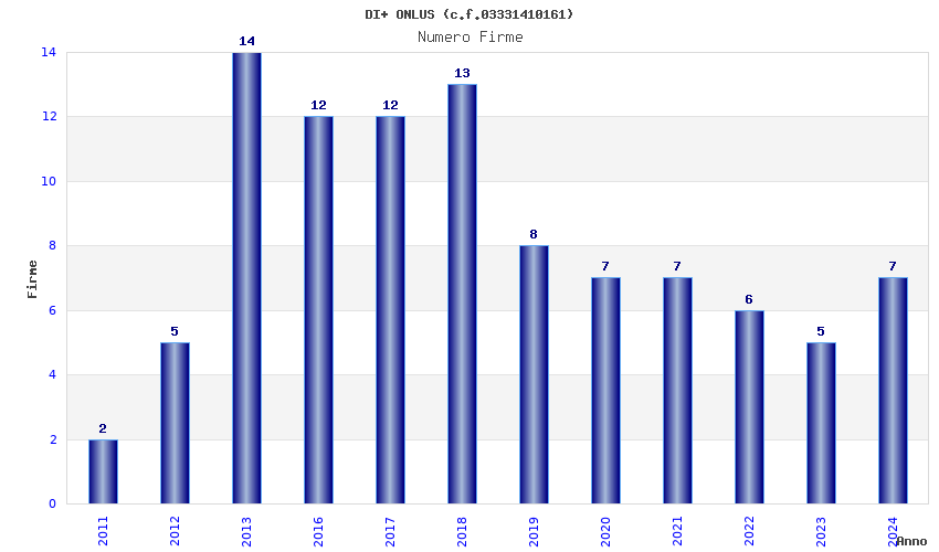 | Anno | Firme | Importi | Media | Naz. | Reg. | Prov. | Comu. |