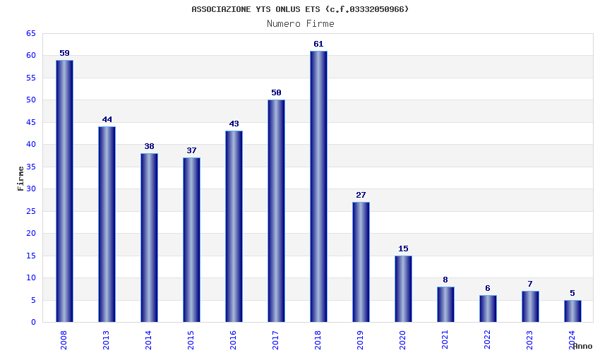 | Anno | Firme | Importi | Media | Naz. | Reg. | Prov. | Comu. |