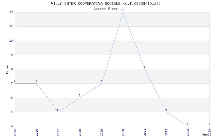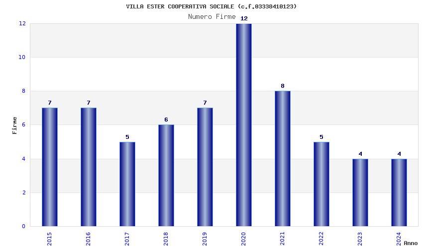 | Anno | Firme | Importi | Media | Naz. | Reg. | Prov. | Comu. |
