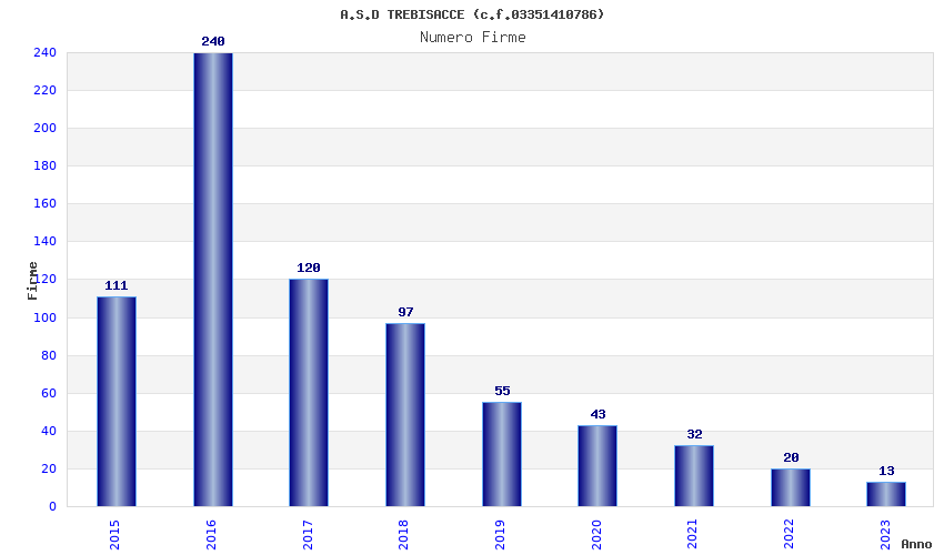 | Anno | Firme | Importi | Media | Naz. | Reg. | Prov. | Comu. |