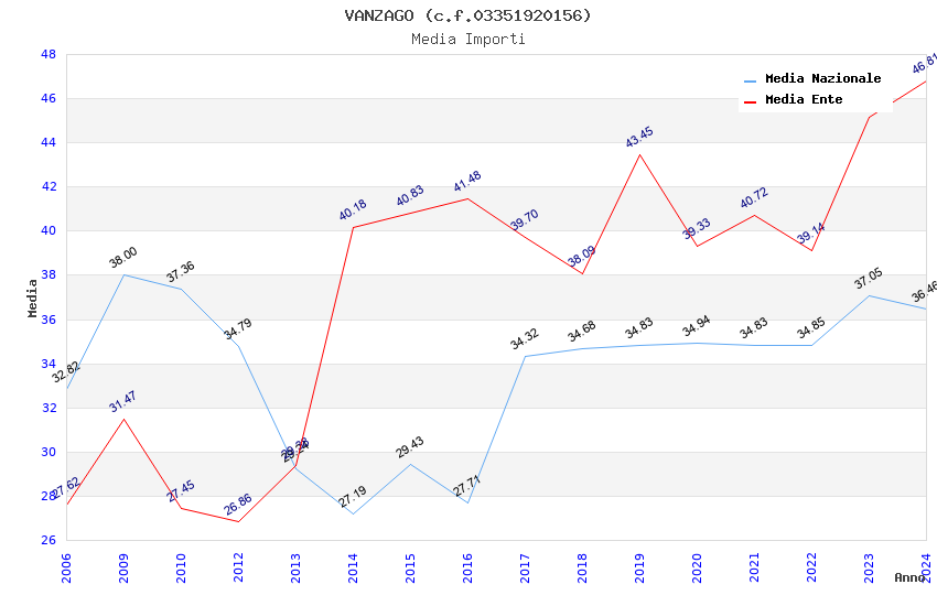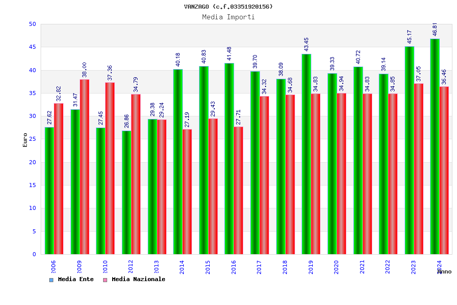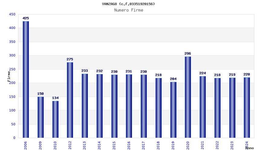 | Anno | Firme | Importi | Media | Naz. | Reg. | Prov. | Comu. |