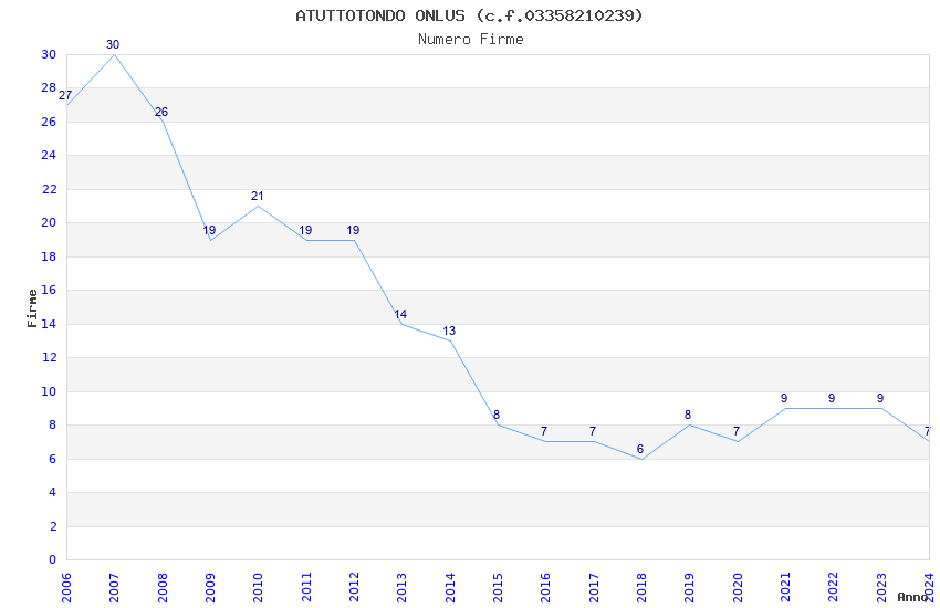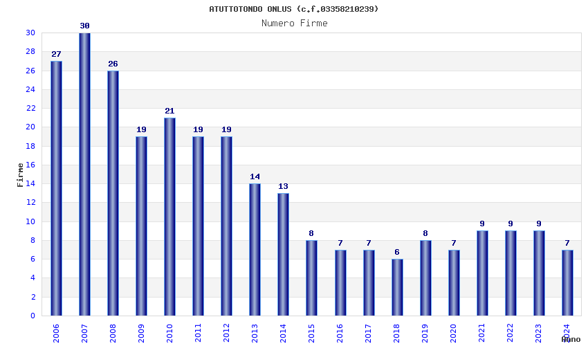 | 2007 | 30 | 2.469,59 | 82,32 | 11.687 | 1.028 | 227 | 2 |