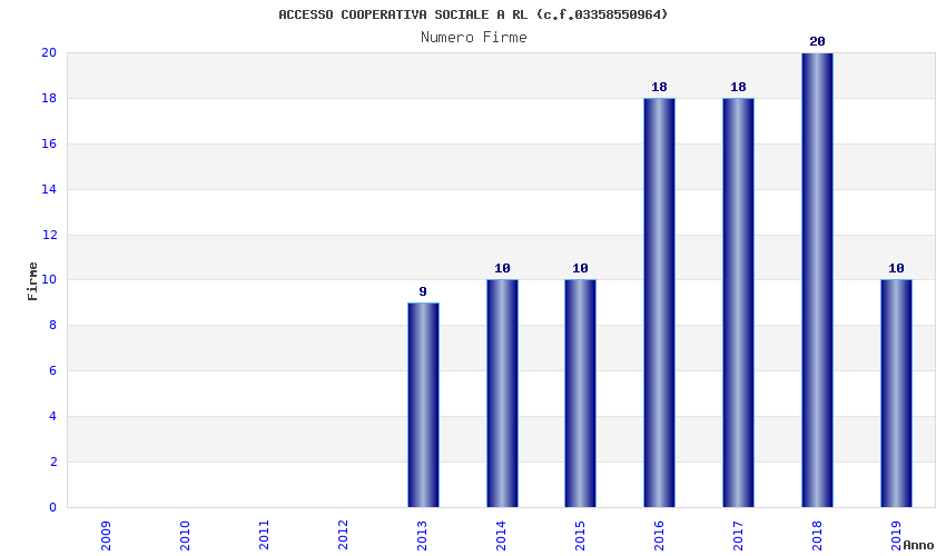 | Anno | Firme | Importi | Media | Naz. | Reg. | Prov. | Comu. |