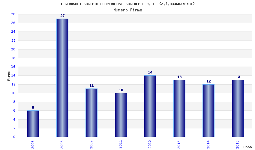 | Anno | Firme | Importi | Media | Naz. | Reg. | Prov. | Comu. |