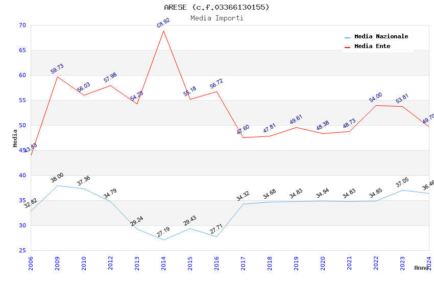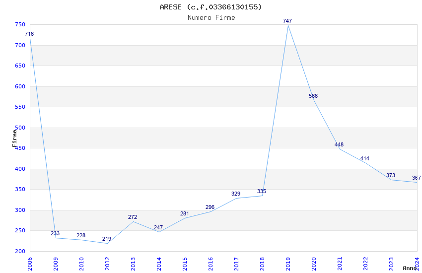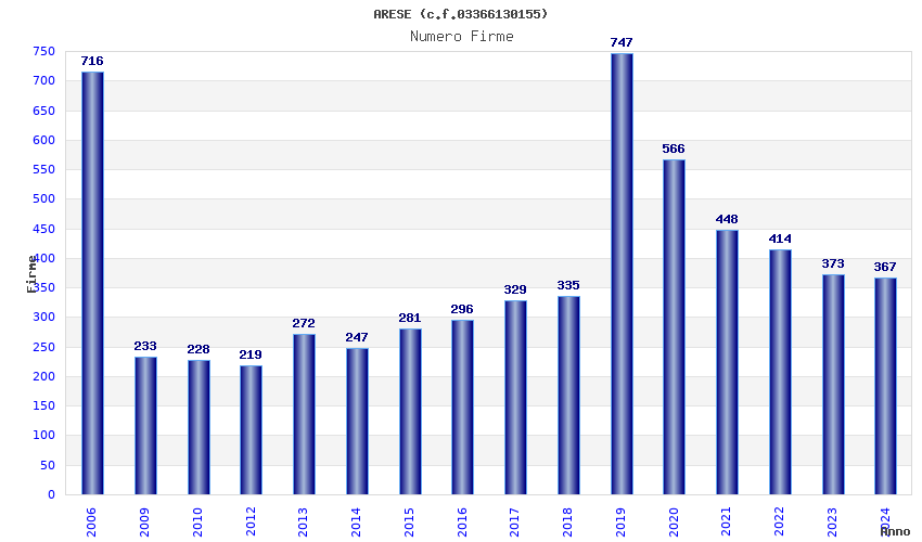 | Anno | Firme | Importi | Media | Naz. | Reg. | Prov. | Comu. |