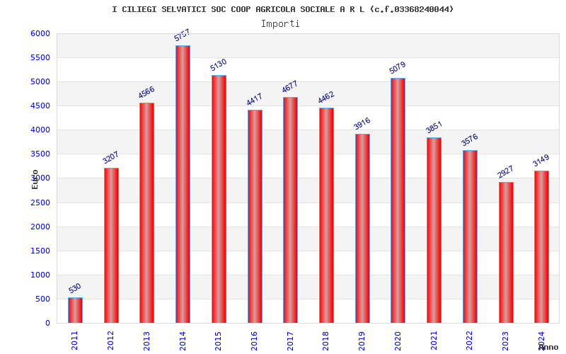 | Anno | Firme | Importi | Media | Naz. | Reg. | Prov. | Comu. |