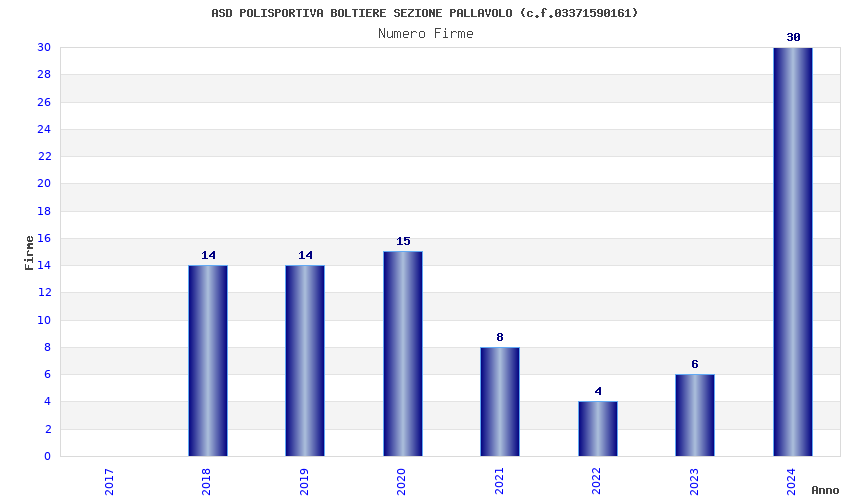 | Anno | Firme | Importi | Media | Naz. | Reg. | Prov. | Comu. |
