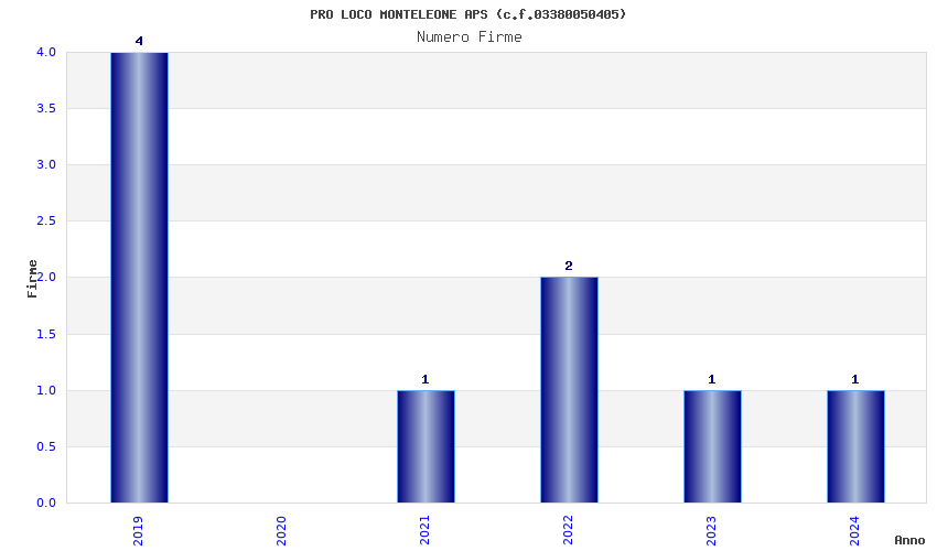 | Anno | Firme | Importi | Media | Naz. | Reg. | Prov. | Comu. |