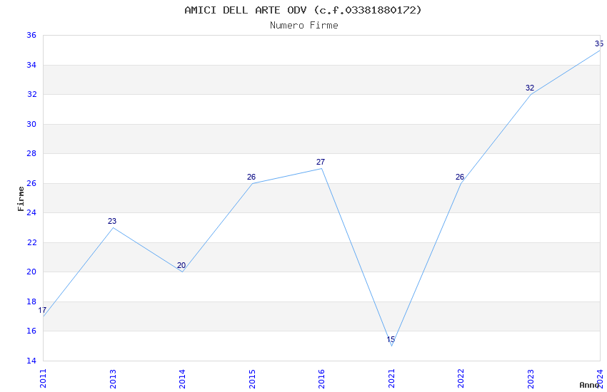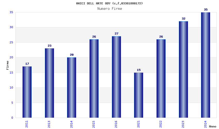 | Anno | Firme | Importi | Media | Naz. | Reg. | Prov. | Comu. |