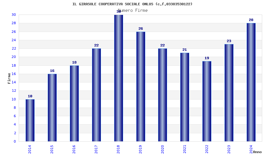 | Anno | Firme | Importi | Media | Naz. | Reg. | Prov. | Comu. |