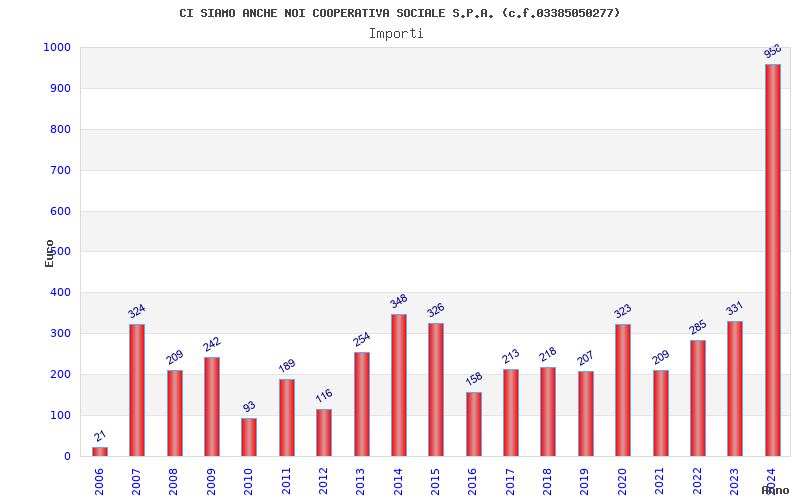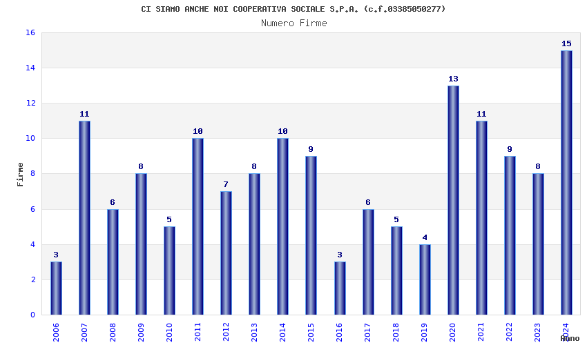 | Anno | Firme | Importi | Media | Naz. | Reg. | Prov. | Comu. |