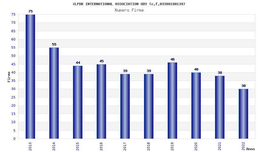 | Anno | Firme | Importi | Media | Naz. | Reg. | Prov. | Comu. |