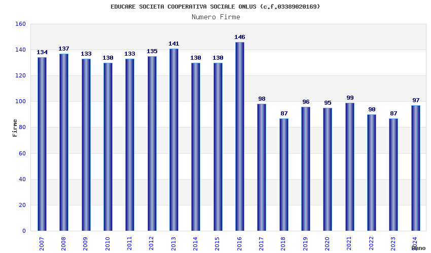 | Anno | Firme | Importi | Media | Naz. | Reg. | Prov. | Comu. |