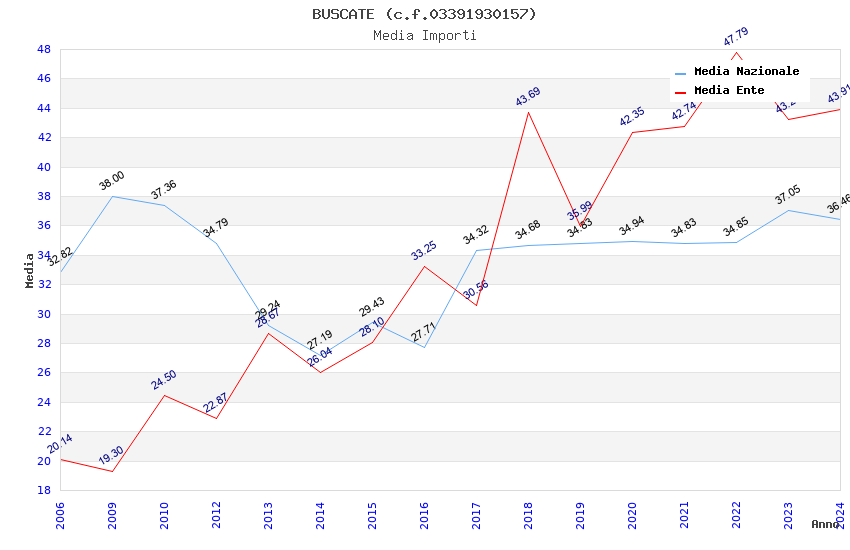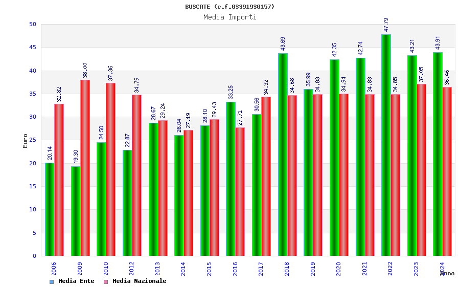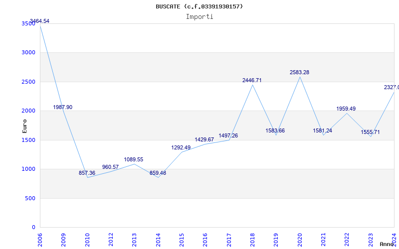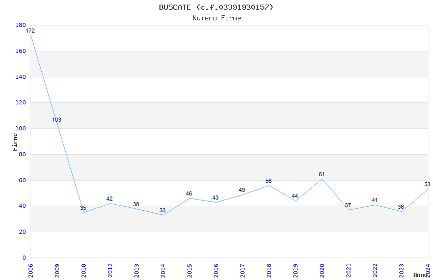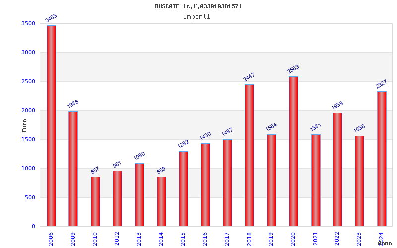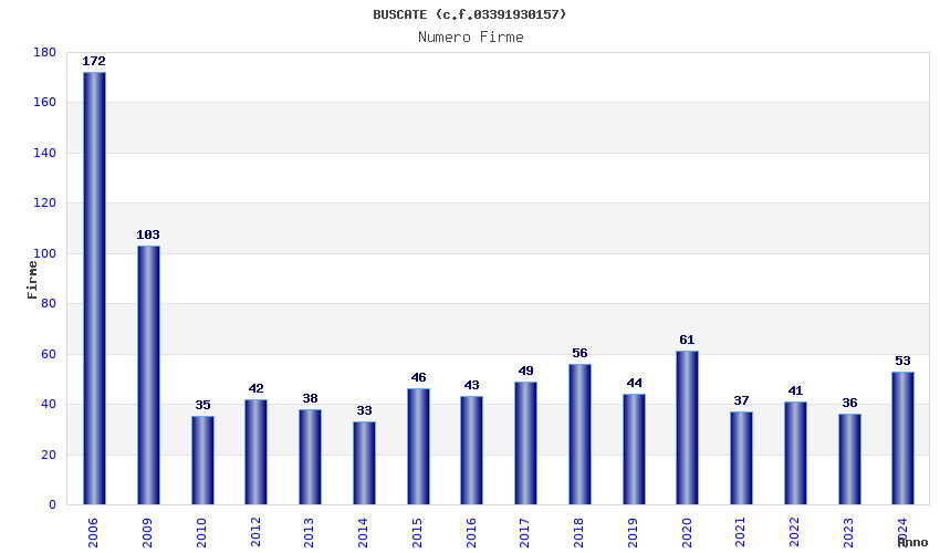 | Anno | Firme | Importi | Media | Naz. | Reg. | Prov. | Comu. |
