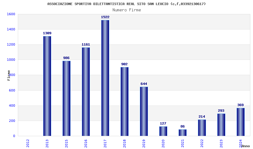 | Anno | Firme | Importi | Media | Naz. | Reg. | Prov. | Comu. |
