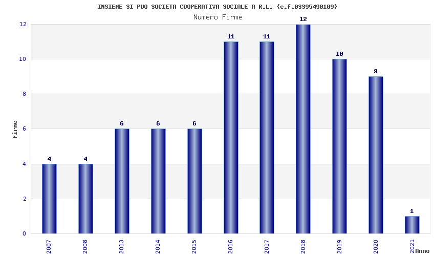 | Anno | Firme | Importi | Media | Naz. | Reg. | Prov. | Comu. |