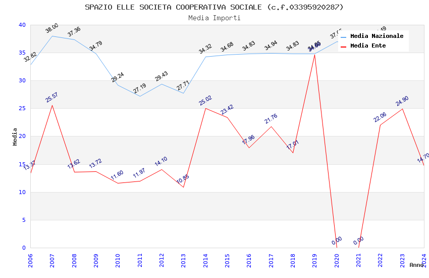 | Anno | Firme | Importi | Media | Naz. | Reg. | Prov. | Comu. |
