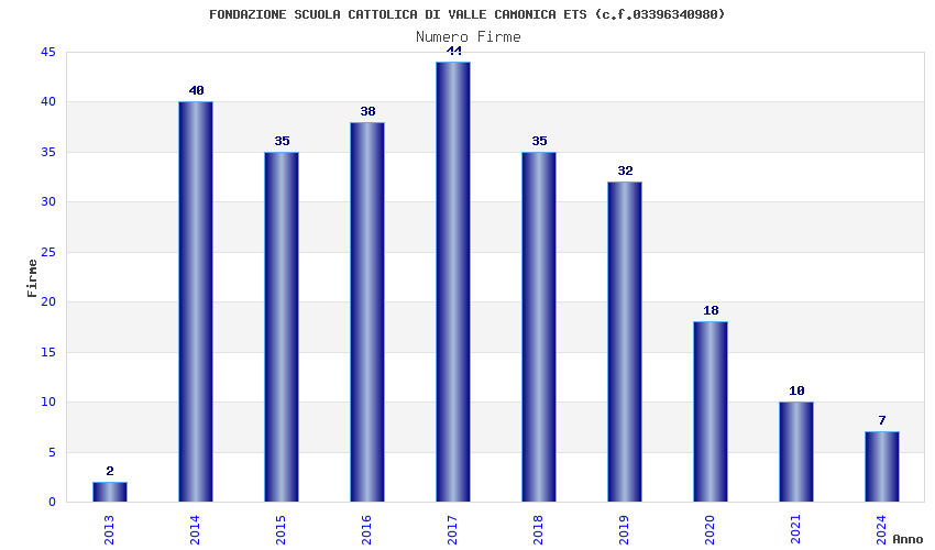 | Anno | Firme | Importi | Media | Naz. | Reg. | Prov. | Comu. |