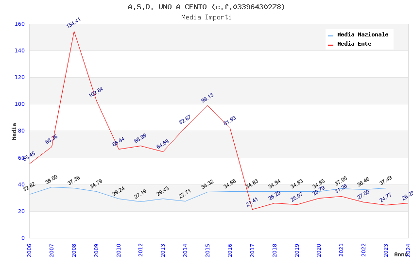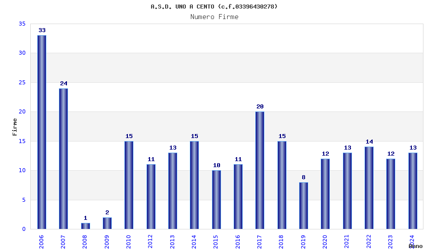 | Anno | Firme | Importi | Media | Naz. | Reg. | Prov. | Comu. |