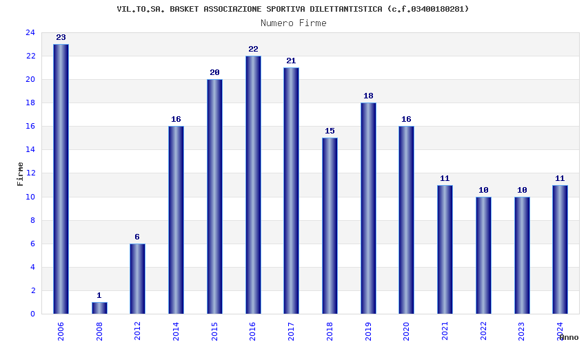 | Anno | Firme | Importi | Media | Naz. | Reg. | Prov. | Comu. |